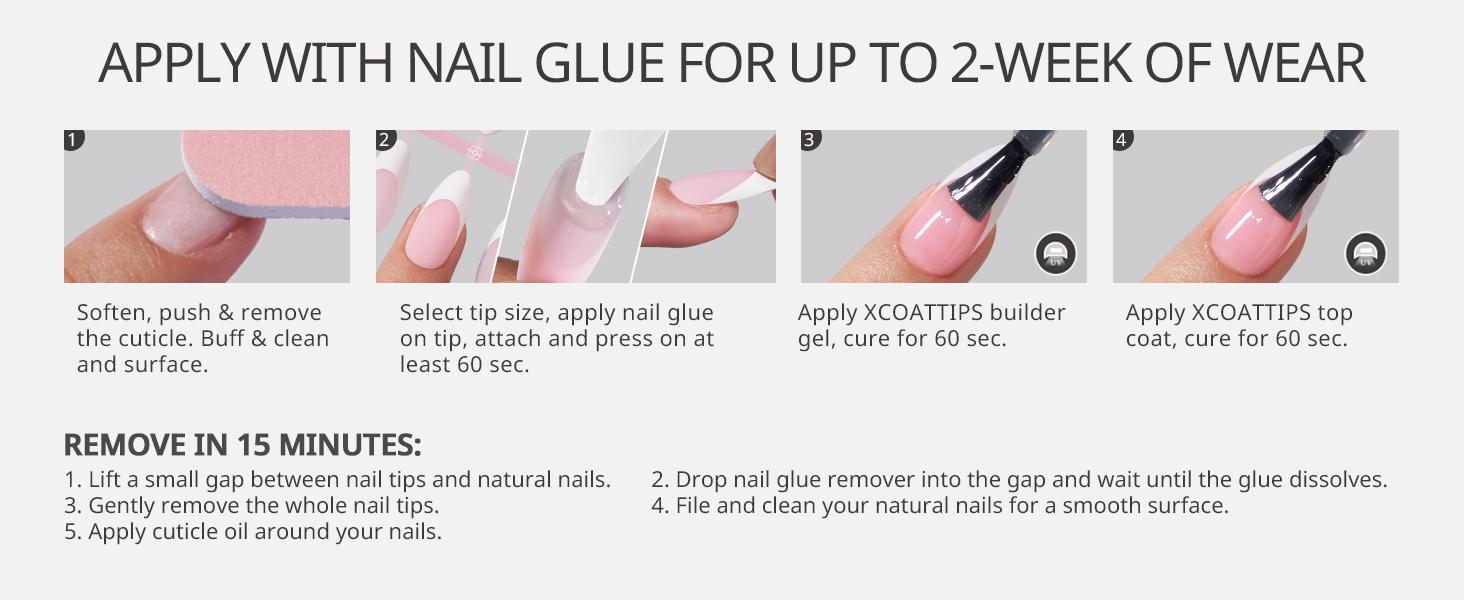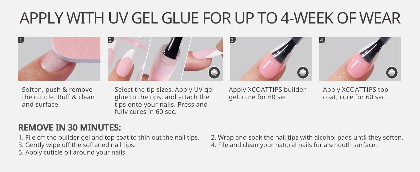 - SUPER TIME & MONEY SAVING: These XCOATTIPS soft gel nail tips come with pre-applied tip primer & base coat cover. Even beginners can create salon-like nail extension within 20 mins! Moreover, saving lots of time and money both at home and salon.
